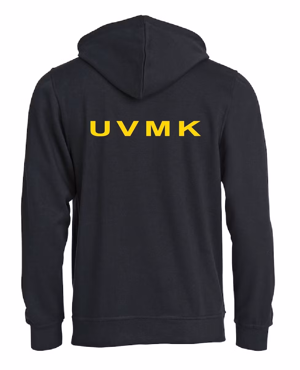 Svart dam-hoodie med UVMK:s logga.
